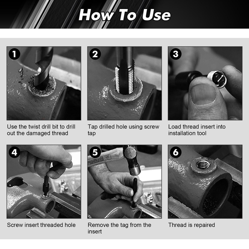 - QUICK AND EASY TO USE Our thread insert is an economical and effective solution for repairing threaded holes. As the complete accessories are included in the kit, the process is quick and hassle-free. Simply follow the instructions and restore your threads in no time.