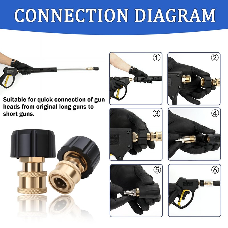 - Convenient Installation & Comprehensive Support: Each pressure washer adapter is engineered for ease of use and tight fit. Clear threading supports stable installation with both m22 female ports and 1/4"" quick connects. Backed by responsive customer service, this adapter ensures hassle-free upgrades for your power washing system. It’s the smart way to maintain your gear and improve efficiency