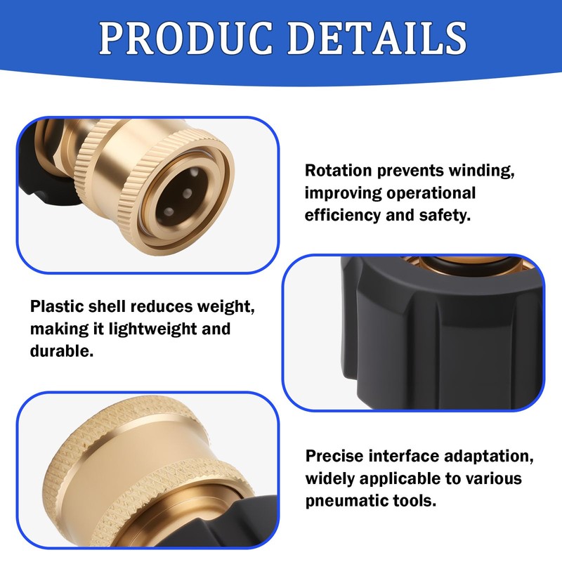 - Fast and Secure Connections: The m22 female to 1/4 pressure washer adapter offers quick assembly and disassembly without tools. It reduces setup time, simplifies system modifications, and minimizes water leakage risks. This practical m22 to 1/4 quick connect is a must-have for those needing a flexible and efficient cleaning solution across multiple hoses or devices