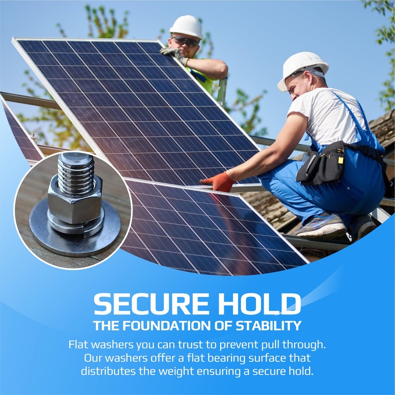 - SECURE HOLD - Flat washers you can trust to prevent pull through. Our washers offer a flat bearing surface that distributes the weight ensuring a secure hold.