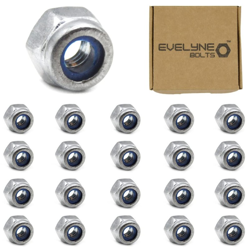 M3 Nyloc Steel Nuts, 3mm Self Locking Nuts with Nylon Inserts (20 Pack) Evelyne Bolts