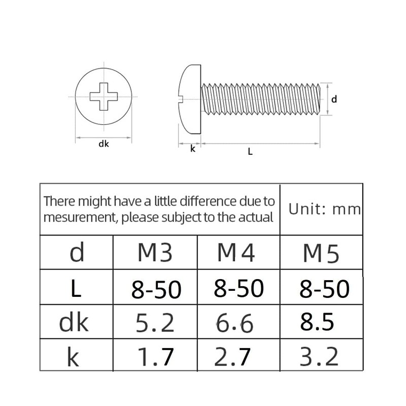 - 【Pan head machine screws】: Phillips drive. Metric machine screws for universal use