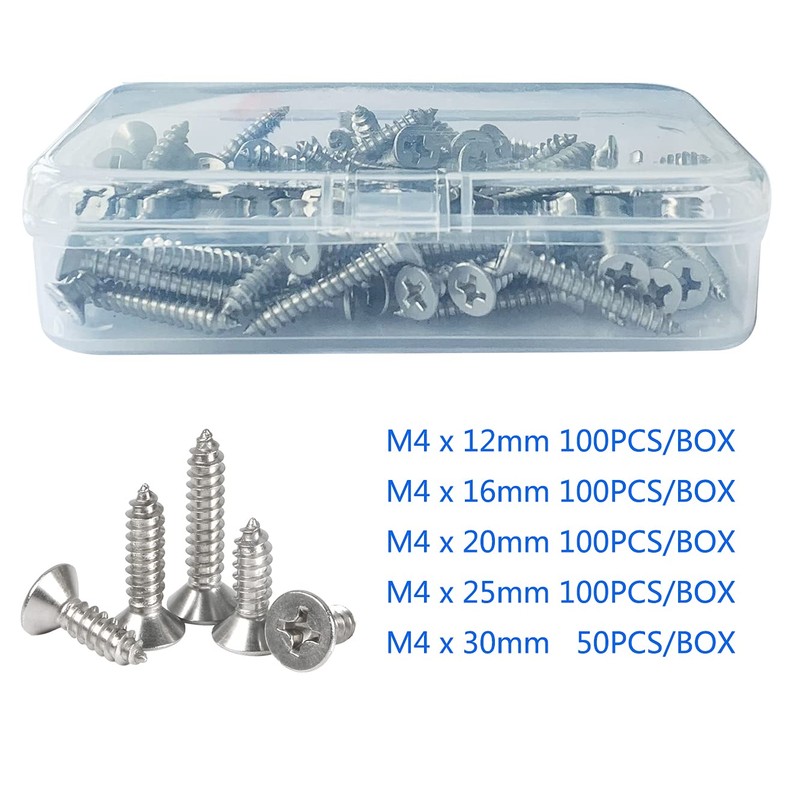 M4 Stainless Steel Self Tapping Screws,100pcs M4x12mm Phillips Flat Head Wood Srews DIY Woodworking Screws with Box (M4 X 12mm 100 PCS)