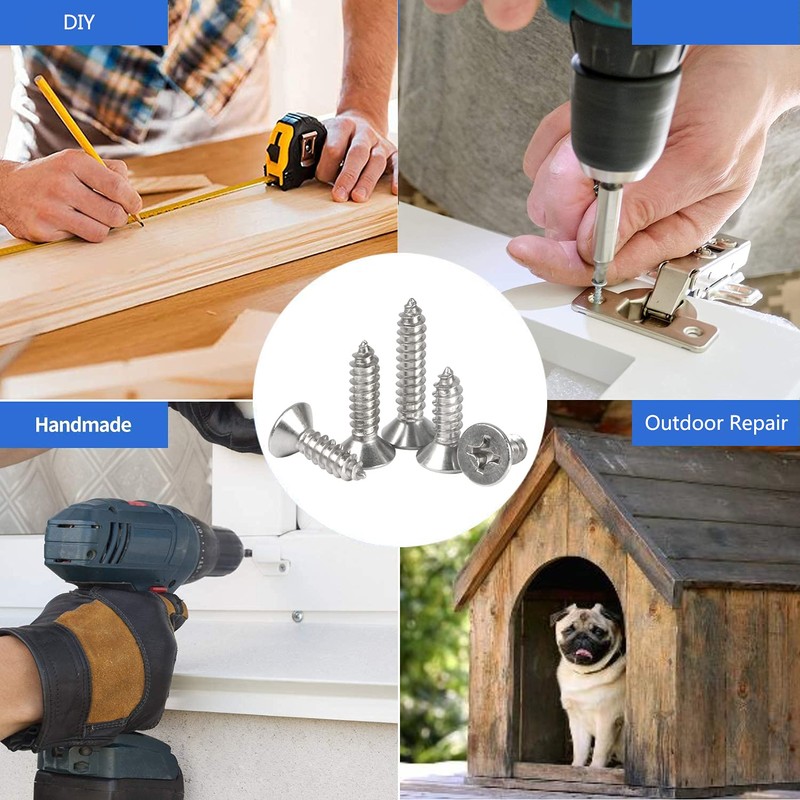 - Wide application: Flat head screws with good holding power fit for many woodworking and DIY jobs, fasteners for the furniture and cabinet industry.
