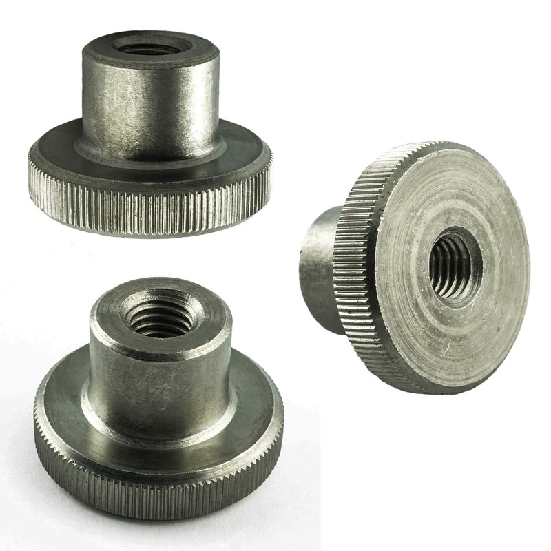 - Metric knurled nut with ISO thread/standard thread, high shape, material: stainless steel 1.4305, standard: DIN 466