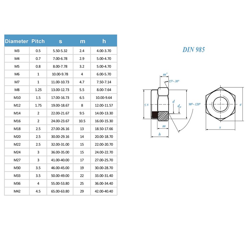 - 👉【Features】: M5 nylock nuts, 20PCS; Thread: Coarse; Standard: DIN 985; Head Type: Hexagon.