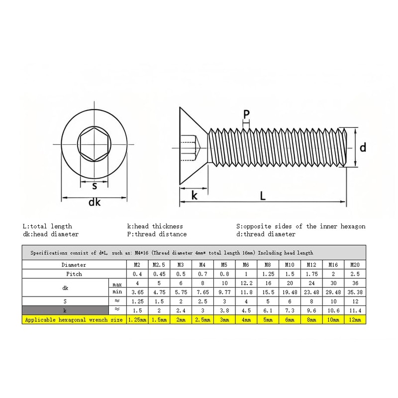 • 【Package】 - 20 x Flat Head Socket Cap Screws