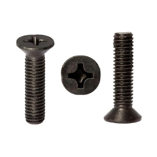 M6 (6mm x 70mm) Black Zinc Flake Phillips Countersunk Machine Screws Metric Flat Head Steel Fully Threaded DIN 965 (Pack of 20) H14BCD