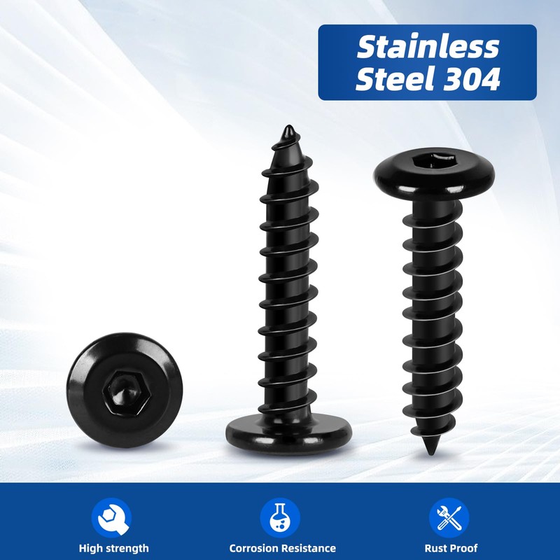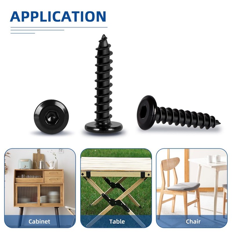Flat Head Socket Cap Self Tapping Screws are made of 304 stainless steel and have good heat and chemical resistance. Great for furniture repair and DIY projects.