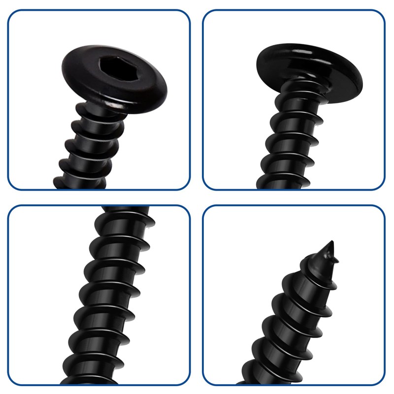 - Type: Flat Head Socket Cap Self Tapping Screws; Color: Black Finish.
