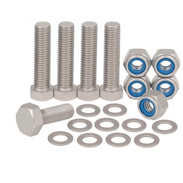 - M5 x mm HEX BOLTS – Includes bolts, nyloc nuts, and washers – Each pack contains 5 x hex head bolts, 5 x locking nuts, and 10 x Form A washers, all crafted from durable A2 stainless steel for long-lasting use and excellent corrosion resistance.
