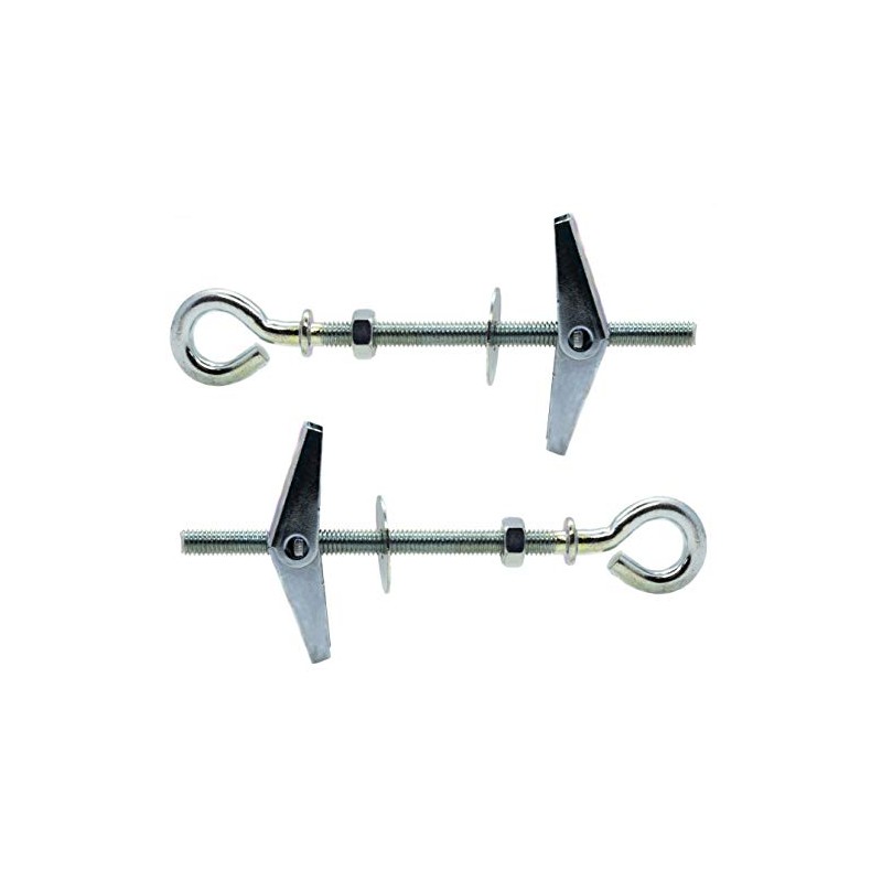 M6 x 80mm Butterfly Anchors Spring Toggles with Closed Hook for Plasterboard Hollow Wall Fixings (Pack of 2)
