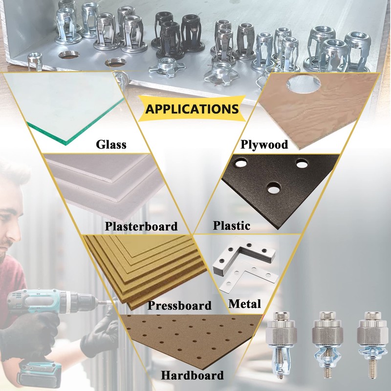 M8 Jack Nut with Installation Tool Threaded Insert Petal Nuts Nutserts Jacknut Srew Anchor Spider Rivnut Blind for Plastic Polywood Pressboard Hardboard