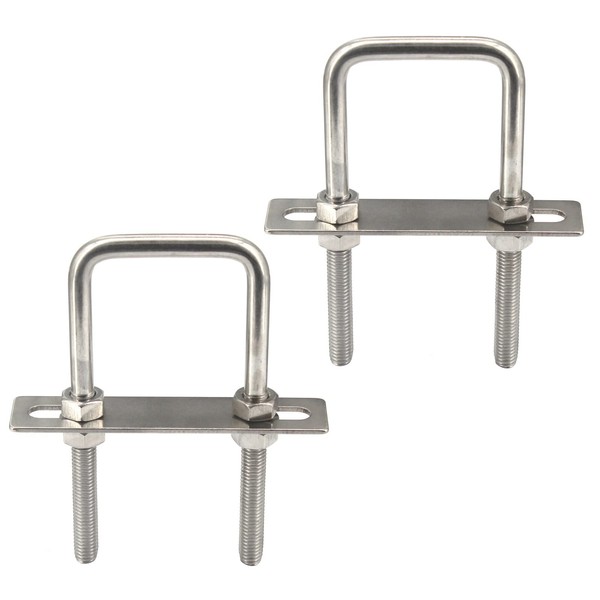 M8 x 55 x 85mm 304 Stainless Steel Square U Bolts with Hex Nuts, Frame Plate, Round Washers (Pack of 2)