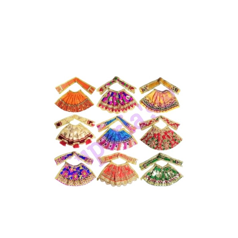 Maa Durga/Lakshmi/Saraswati/Parvati Idol Dress/Chunri/Patka & Lehanga Dress (9 Dresses) with (Mala Set) (Devi Dress) (Navratri Special) Multicolor. (9 Dresses with 2 MALA Set)