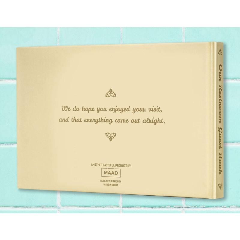 - THIS IS NO ORDINARY GUESTBOOK - What spices up a home bathroom better than a good book? This beautifully hilarious book will keep each and every guest entertained for hours..or however long it takes.