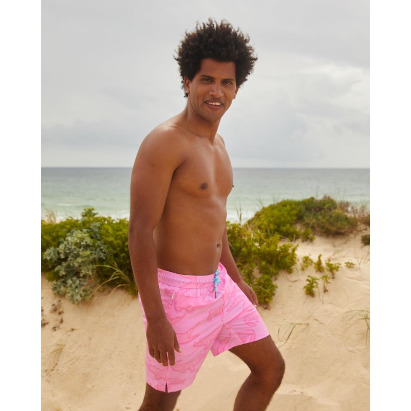 maamgic 7 Inch Mens Swim Trunks with Compression Liner Board Shorts with Zippered Pocket Bathing Suit for Beach Vacation Pink Crocodile X-Large