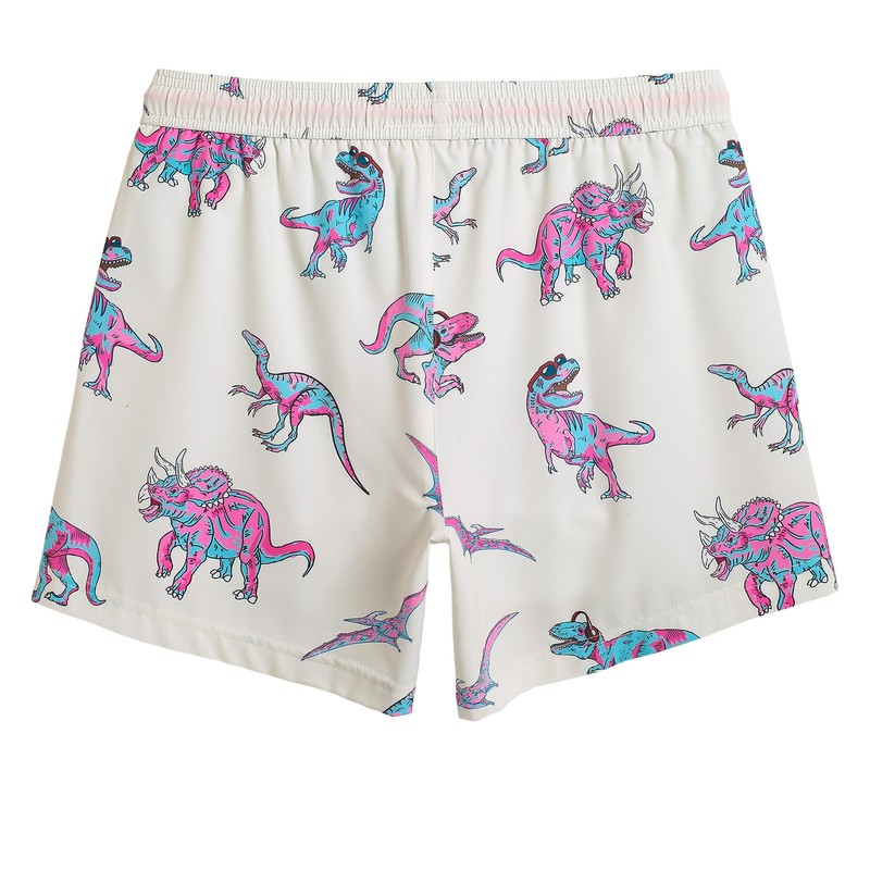 maamgic Mens 5.5 Inch Swim Trunks with Compression Liner Board Shorts Quick Dry Beach Swimwear with Zipper Pockets White Dinosaur Medium