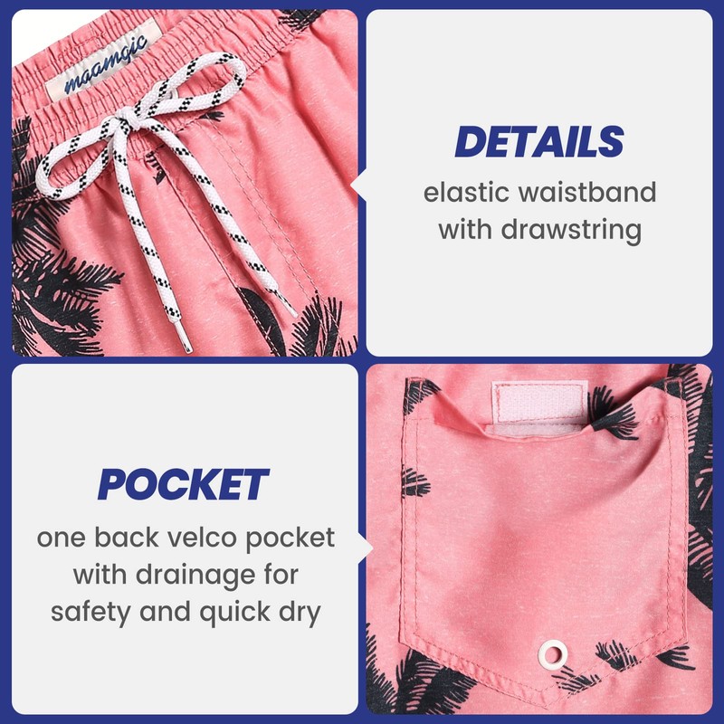MaaMgic Mens Short Swim Trunks Quick Dry Swimming Shorts Print Bathing Suits with Mesh Lining,Red-Palm-Tree,Small