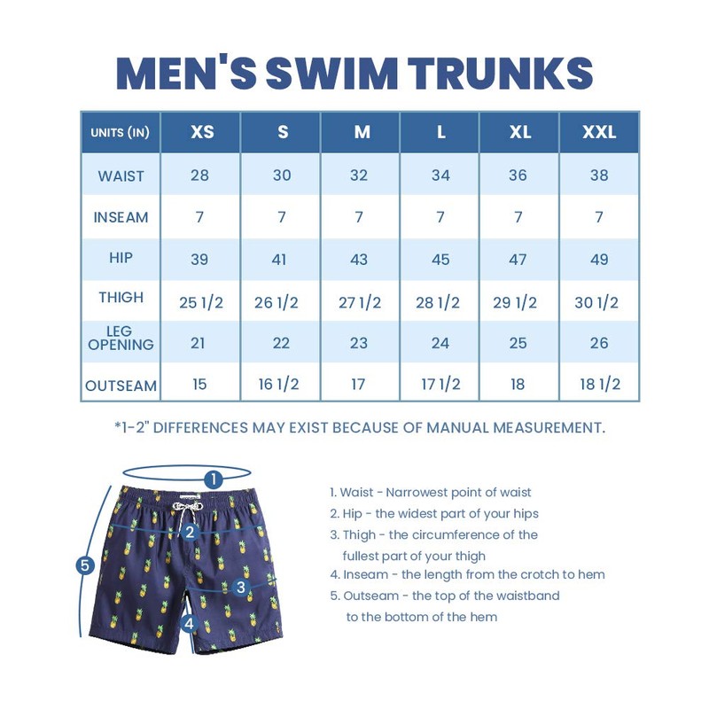 - Made from super soft, lightweight material, these swim trunks shorts are a quick-drying wonder, perfect for dressing up or down for the occasion such as for party, bar, shopping, sports, vacation, hawaii beach.6 Size available: XS Waist:28"-30"/ S Waist:30"-32"/ M Waist:31"-33"/ L Waist:33"-35"/ XL Waist:35"-37"/ XX-Large Waist:37"-39".