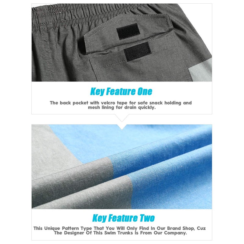 - Feature: Elastic waistband with drawstring goes through entire the swim shorts makes convenient to wear. 2 secret side pocket and one back pocket with velcro give you fully sense of security.