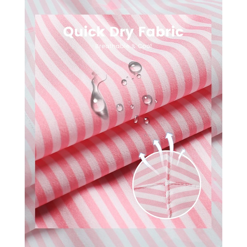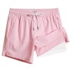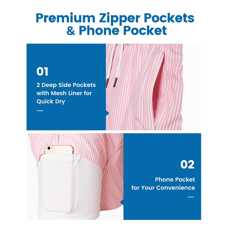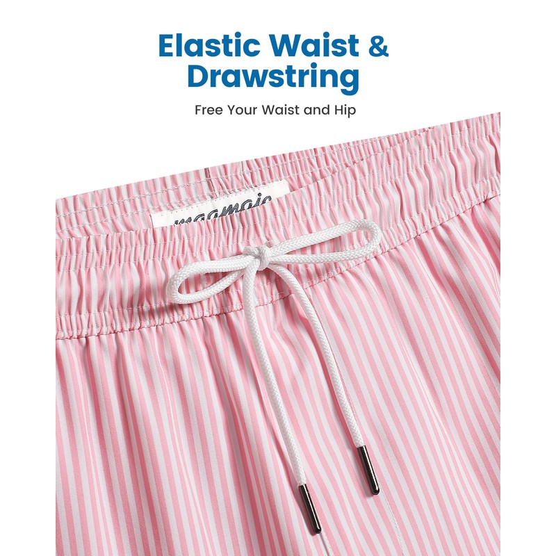 maamgic Mens Swim Trunks with Compression Liner 5" Stretch Beach Shorts Quick Dry with Zipper Pockets No-Chafing Board Shorts Pink White Stripe M