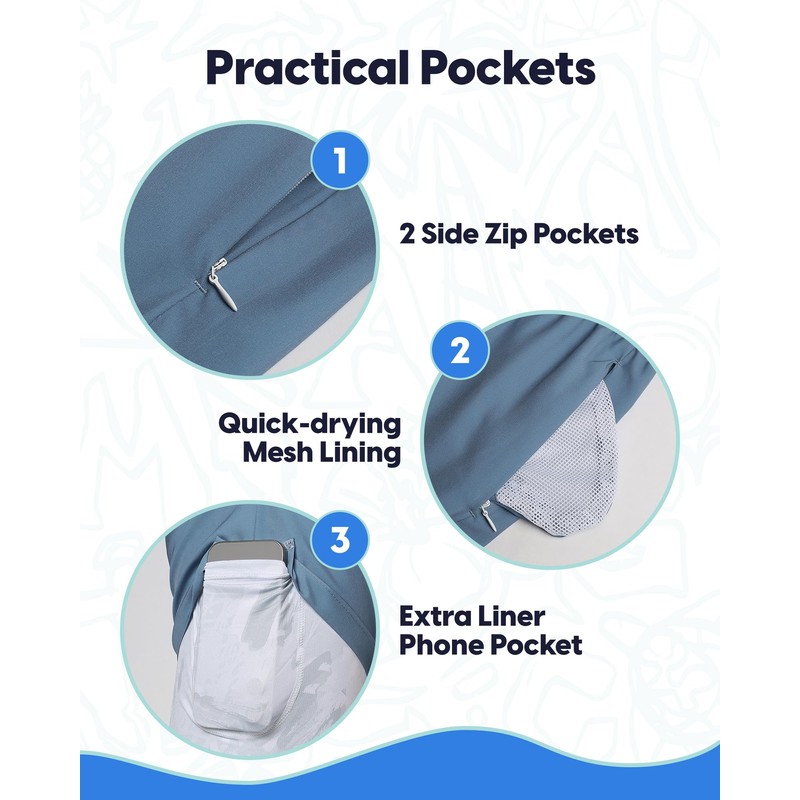 - 【Zipper Pockets】 Our swim shorts have two side invisible zipper pockets, and they're made with smooth mesh on the inside. There's also a built-in pocket on the liner to safely store your personal items.