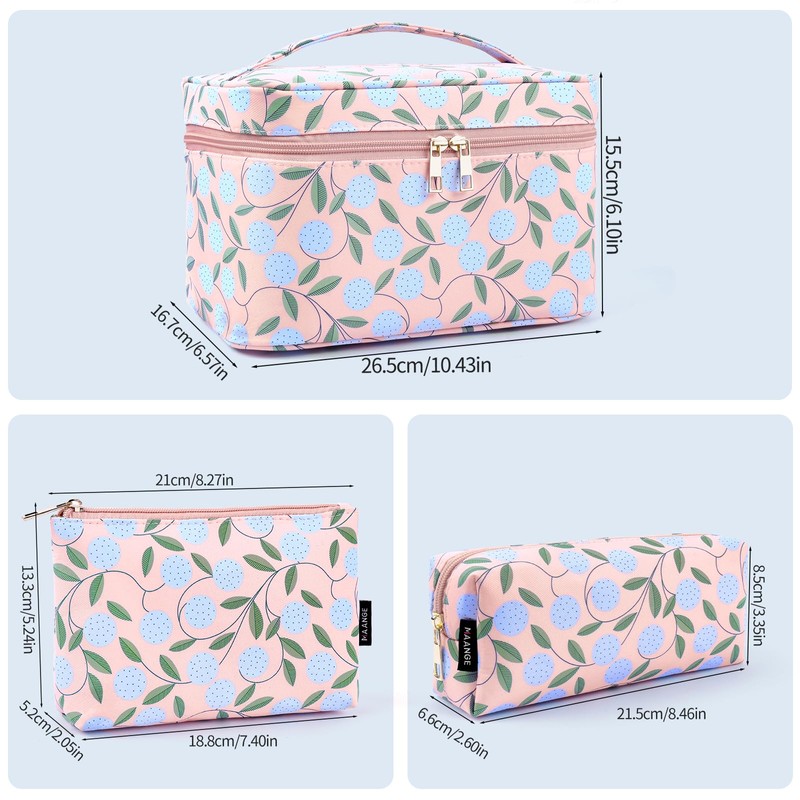 - Multi-Size Storage Solution: The set includes small, medium, and large cosmetic bags. Big Size: 10.23 x 6.29 x 5.9 inches, Medium Size: 8.07 x 2.16 x 5.11 inches, Small Size: 7.48 x 2.55 x 3.54 inches. Portable and large capacity. The travel make up bag can hold your lipstick, cosmetic accessories, lip gloss, brushes, skincare products, makeup tools, or travel essentials and can be easily folded up and placed in a handbag or suitcase when not in use.