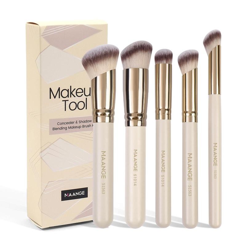 MAANGE Angled Concealer Brush Set, 5 Counts/set Versatile Soft Makeup Brushes, Brushes with Soft Bristles, Makeup Brushes Set, Summer Gift, Makeup Brushes Sets