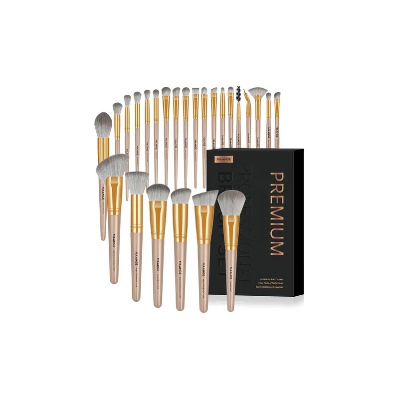 Maange Brochas Set 25 Brochas Maquillaje Profesionales Con Caja Alta Calidad Kit De Brochas Kabuki Brocha Para Base Pincel Para El Rostro Pincel Para Los Ojos Rosa Pálido+oro