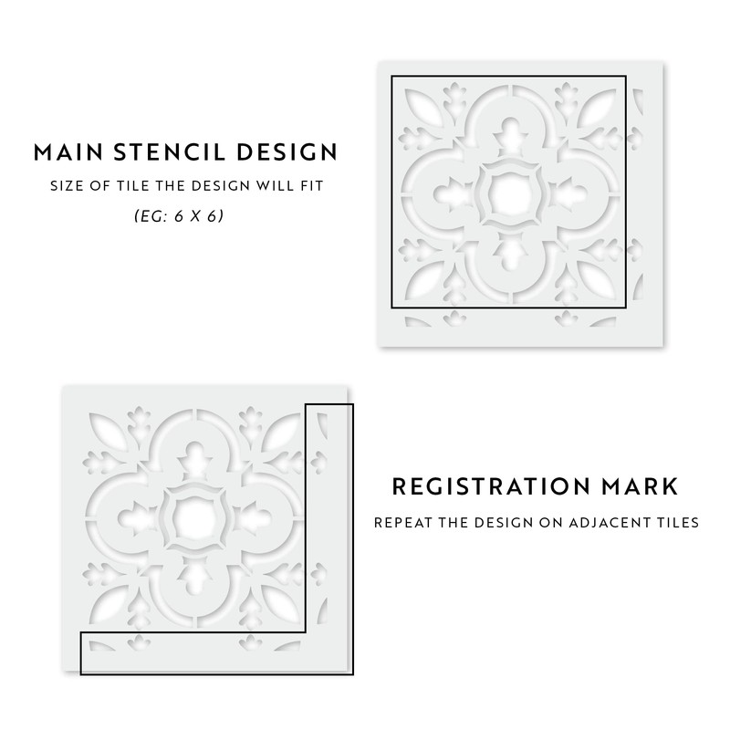 - Tile stencils are designed for straightforward and enjoyable use. The registration marks ensure a hassle-free application, allowing you to achieve professional-looking results with minimal effort