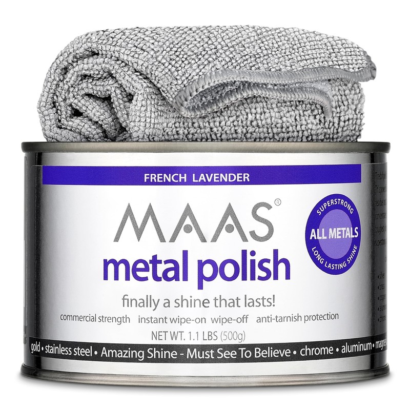 - PACKAGE INCLUDED : 1 can of 1.1 pounds Maas Metal Polish, 1 MAAS Microfiber towel.