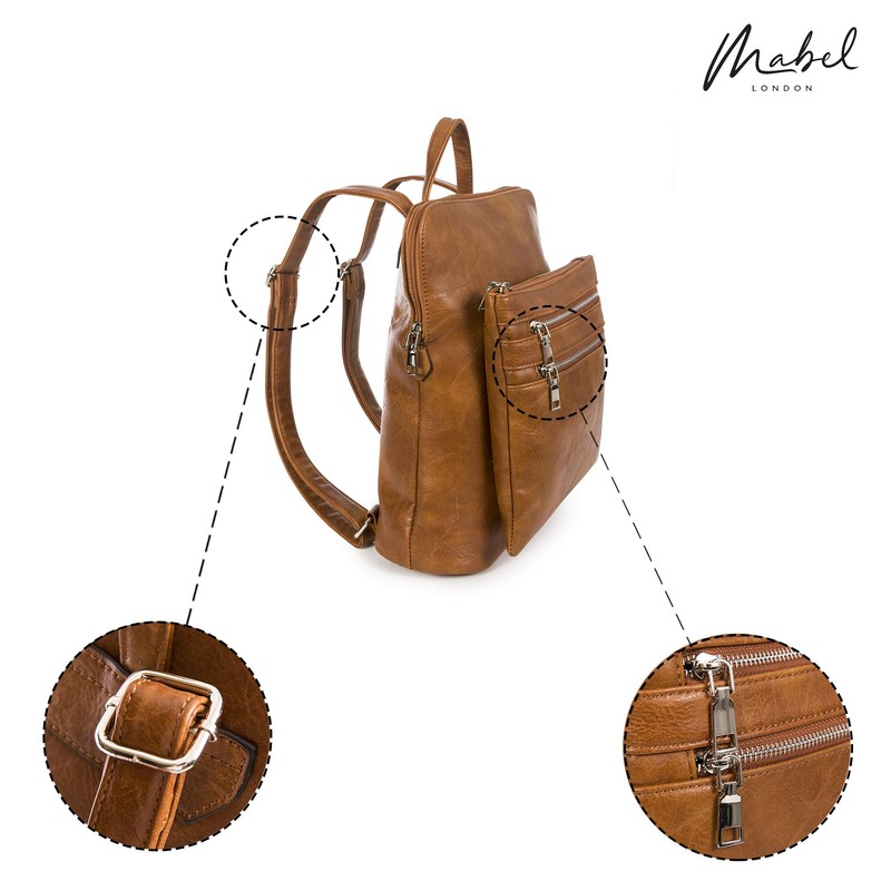 - Mabel Backpack Tote Bag - Multiple Pockets Shoulder Sling Bag - Vegan Faux Leather - With Shoulder Straps & a Top Handle - Totepack