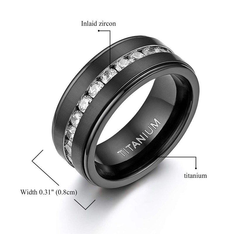 Mabohity Men's Titanium Ring with Cubic Zirconia Titanium 8 mm Wide Eternity Wedding Engagement Ring Friendship Ring Wedding Band Black Size 54 to 75, Titanium