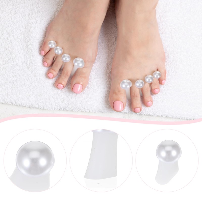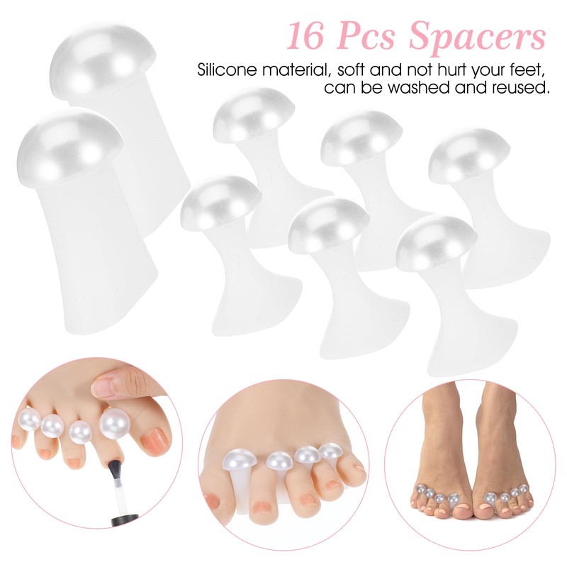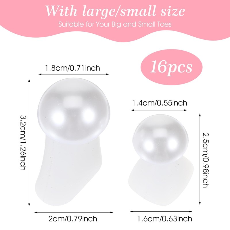 Mabor 16Pcs Silicone Toe Separators for Pedicure, White Pearl Toe Spacers and Dividers for Nail Polish Application, Soft Silicone Separators for Feet Nail Art Tools