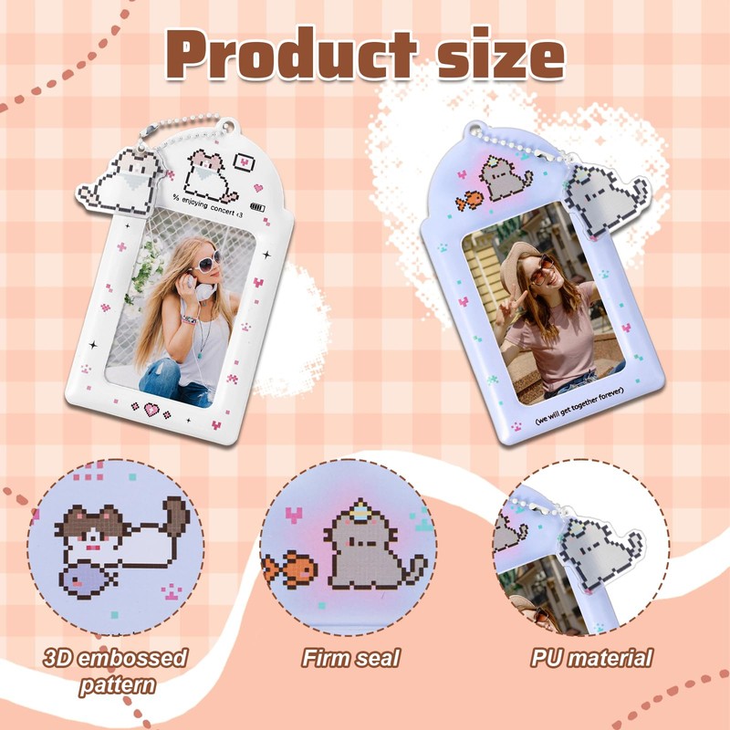- Package Component: You will receive 2 pieces photo card holders. Photocards holder including kawaii cat pendant keychain. Two different colors can be paired with different styles of cards according to your preferences