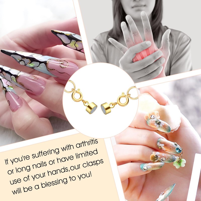 - Exquisite Design: One end of the necklace helper is a circular ring, and the other end is a mechanism buckle. The mechanism buckle controls the opening and closing of the buckle through a spring mounted mechanism, making it very convenient to wear. The magnetic bracelet helper tool makes it easier to put on and remove your jewelry