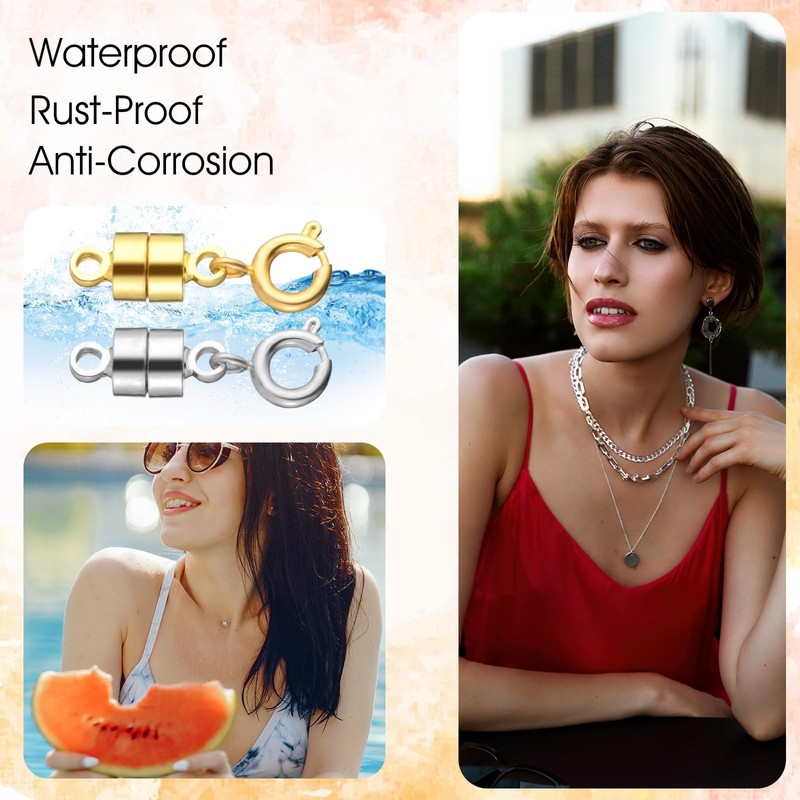 - Magnetic Necklace Clasps: The necklace connector is made of zinc alloy material, and uses electroplating technology, which is lightweight and does not easily fade, so you can use it for a long time. Each magnetic necklace extension contains 2 magnetic components that can be well sucked together, so you don't have to worry that the magnetic clasp will break easily