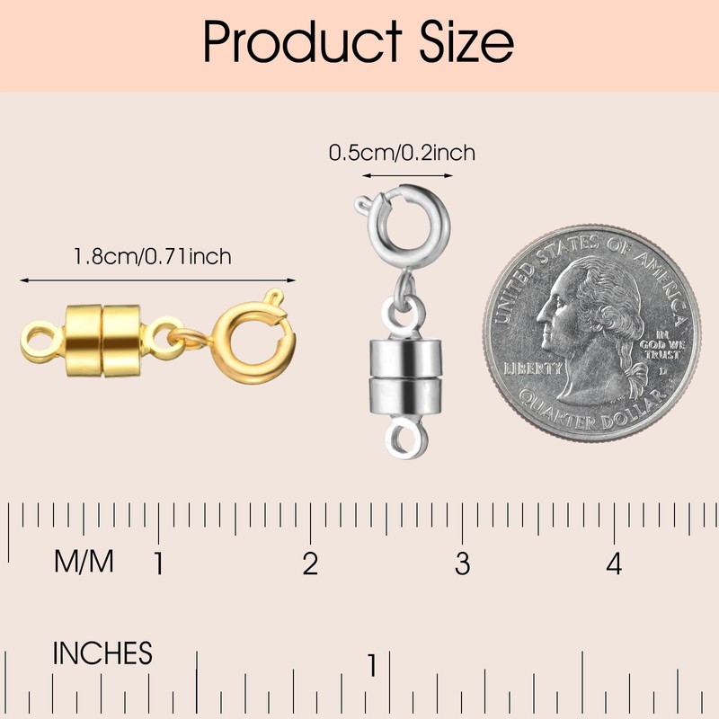 - Size and Component: The necklace clasp measures about 1.8 x 0.5 cm/0.71 x 0.2 inches, suitable for extending a variety of jewels with similar materials and colors. The charm clasp can save a lot of time, and the common silver and gold colors also let your jewelry blend with the necklace clasp. You will receive 8 pieces magnetic necklace clasps, including 4 pieces gold clasps and 4 silver clasps. Enough quantity and different colors to meet your daily needs and replacements.