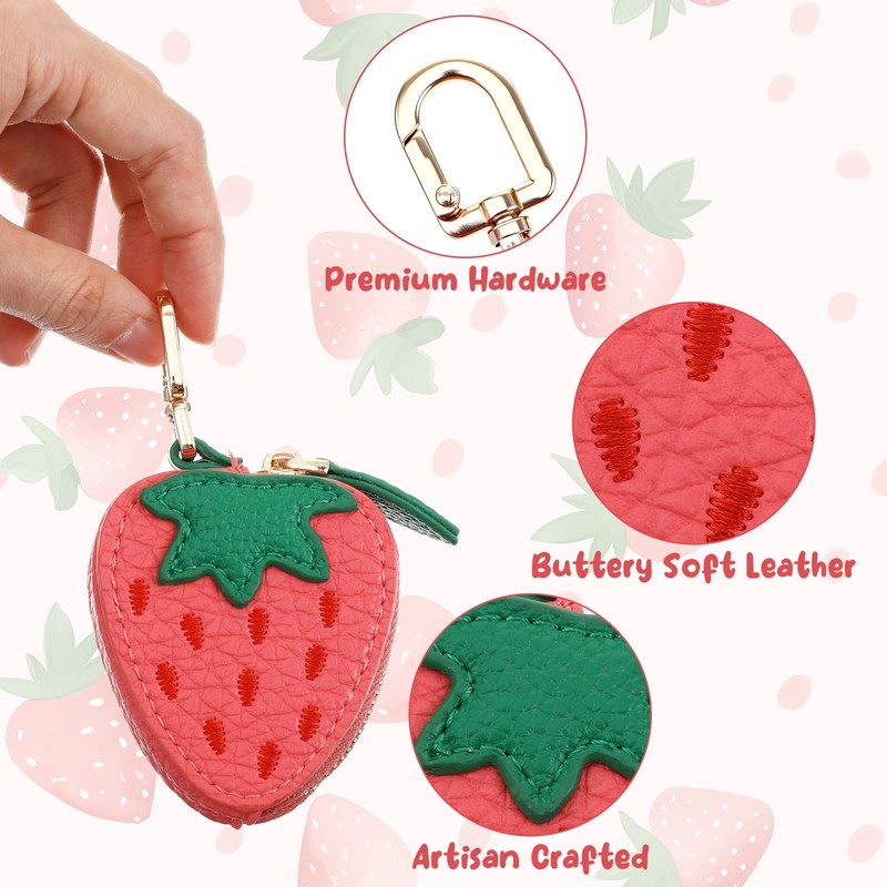 - Material: Crafted from pink PU leather, this strawberry coin purse is durable and stylish. The zippered closure ensures your items stay secure, while the keychain adds convenience