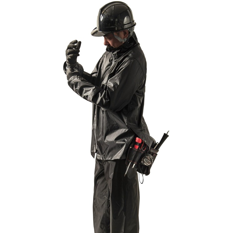 - (Artisan specification model rain suit for outdoor work) Water pressure resistance of 33.8 ft (10,000 mm) H2O is waterproof and prevents water from permeating to the back of the fabric. This rain suit combines functionality and convenience that craftsmen demand