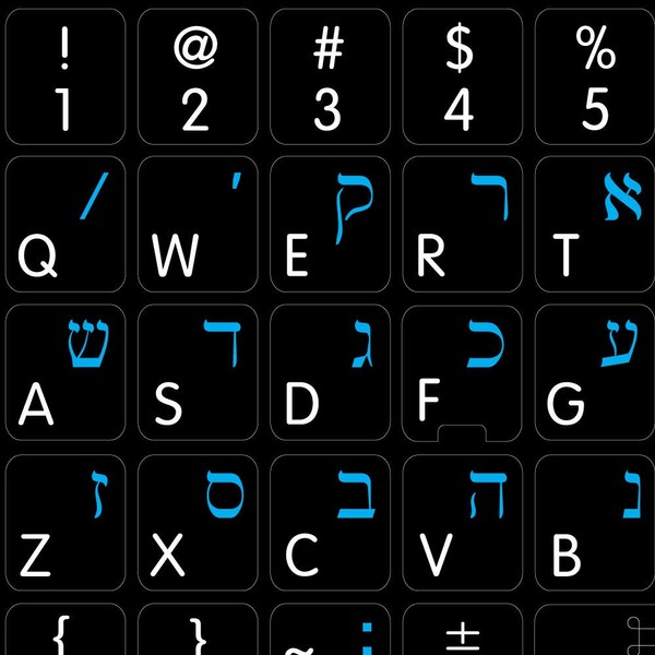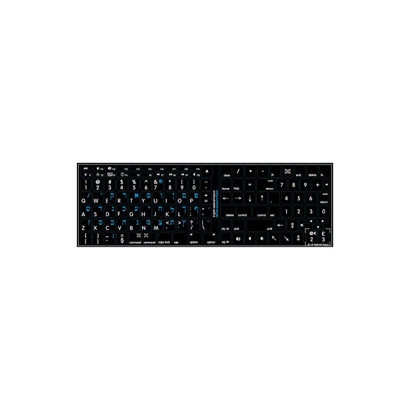 MAC ENGLISH-HEBREW KEYBOARD LABELS LAYOUT ON BLACK BACKGROUND FOR DESKTOP, LAPTOP AND NOTEBOOK