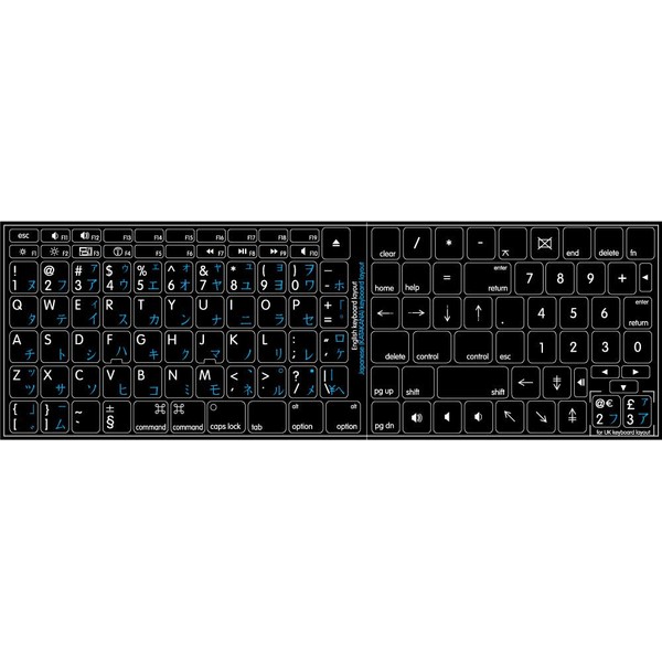 MAC English-Japanese Katakana Keyboard Stickers ON Black Background for Desktop, Laptop and Notebook