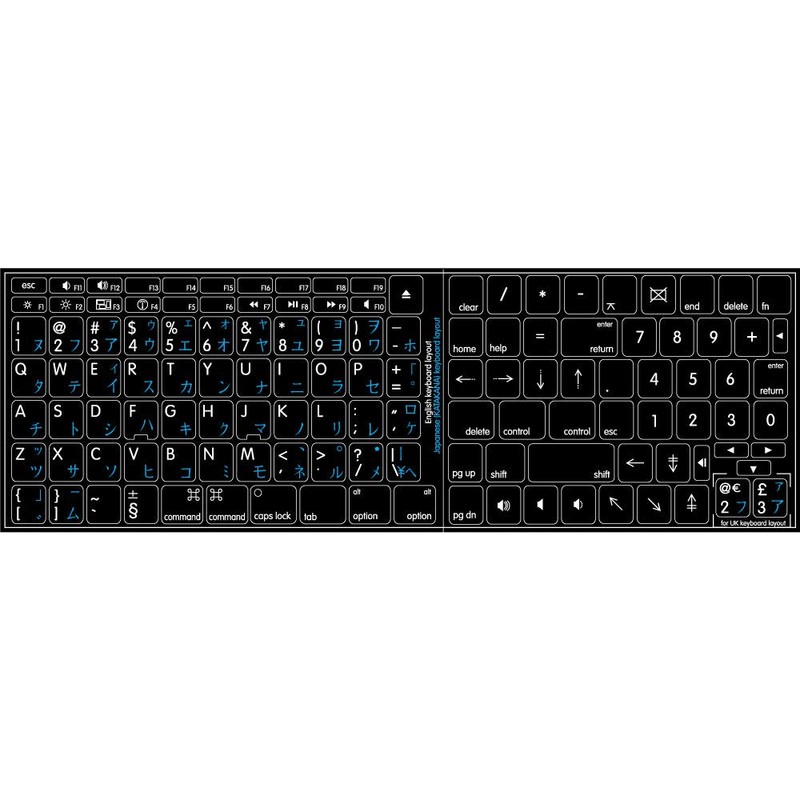 MAC English-Japanese Katakana Keyboard Stickers ON Black Background for Desktop, Laptop and Notebook