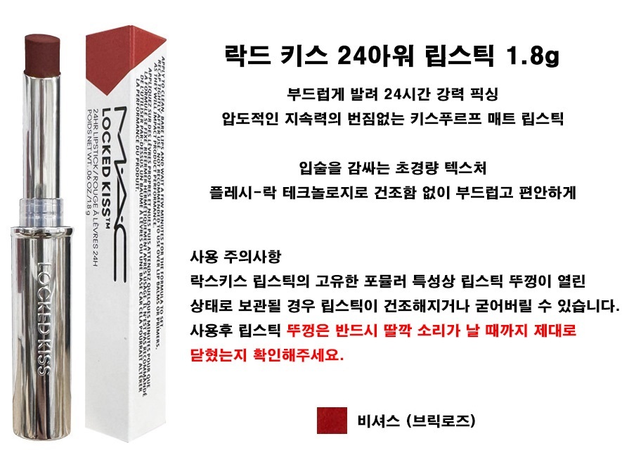 MAC Locked Kiss 24-Hour Lipstick 1.8g (Vicious) / 맥 락드 키스 24아워 립스틱 1.8g (비셔스)