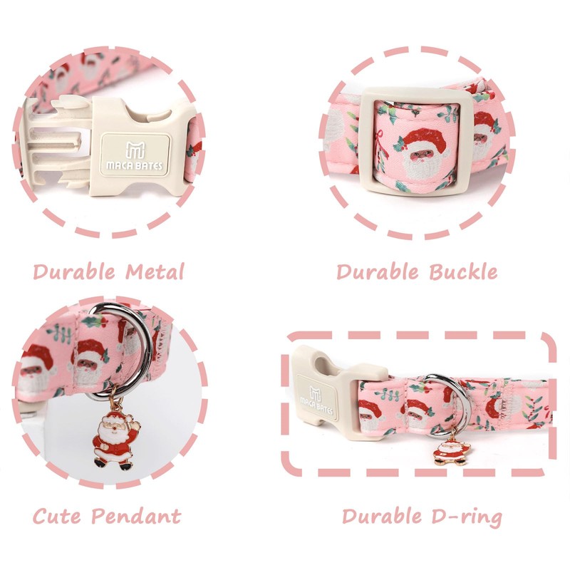 Maca Bates Christmas Santa Claus Dog Collar Pink Puppy Collars Durable Comfortable Adjustable Birthday Gift for XS Small Medium Large XL Girl Boy Female Male Dogs Pet with White Buckle