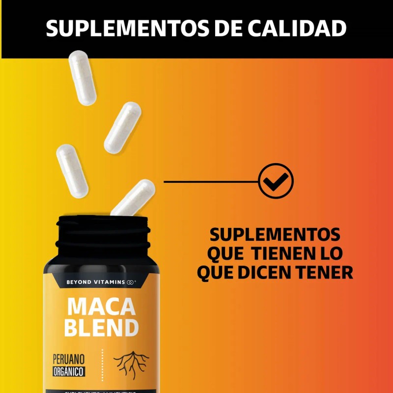 Maca Blend Maca Peruana Orgnica Con Pimienta Negra - Maca Negra Peruana, Maca Amarilla, Maca Roja - Capsulas Maca - Testosterona - Precursor Vegan -