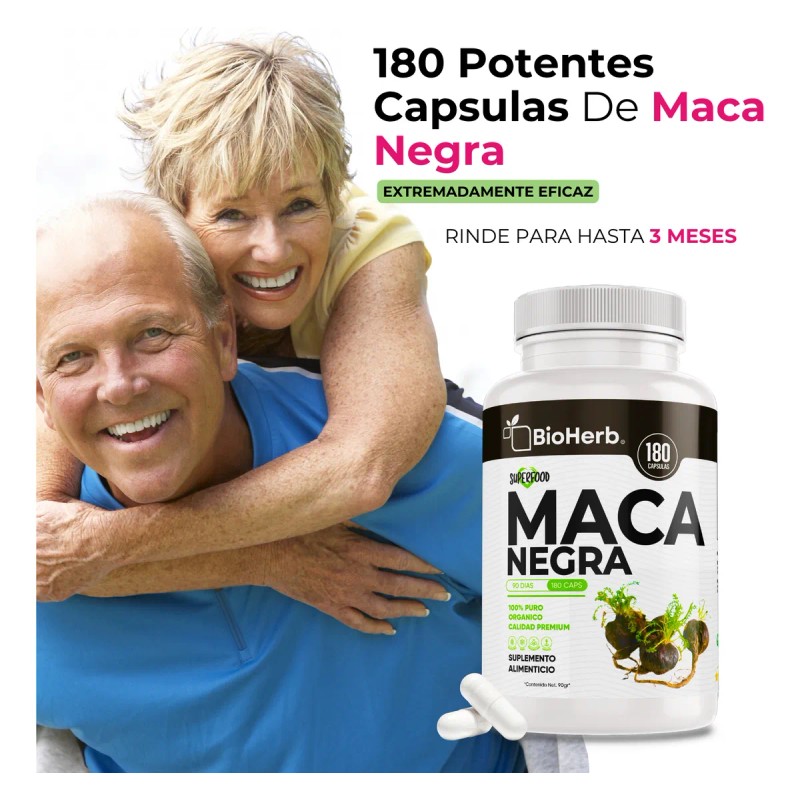 Maca Negra 100% Pura 180 Capsulas Para 90 Dias Bioherb Sin Sabor