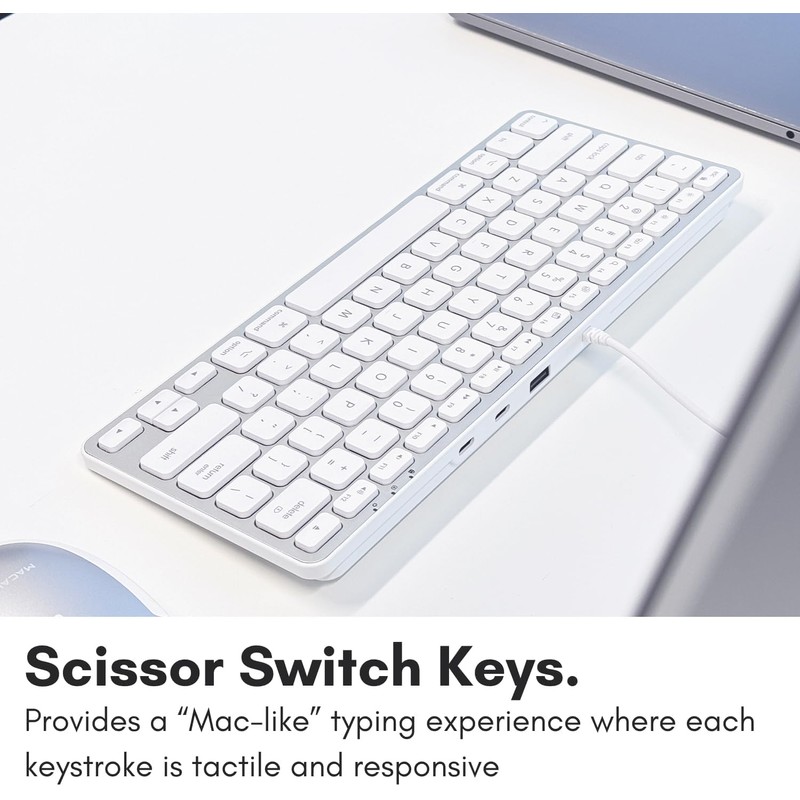 Macally Small Keyboard for Mac with USB Hub (3 Ports) - Wired 2 in 1 USB C + A Plug - Save Space with an Apple Compatible Keyboard (78-Key Layout) - Silver