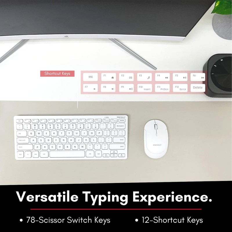 - (Estamos aquí para ti): En Macally, tu satisfacción es nuestra máxima prioridad. Por lo tanto, junto con nuestro combo de teclado y mouse blanco, también recibirás un soporte de fácil acceso y hasta 2 años de garantía.
